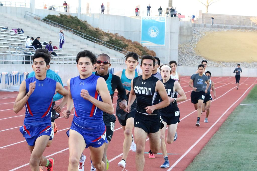 District 1-6A at Socorro’s Student Activities Complex (unless otherwise noted): Tuesday, March 30 – 1 p.m. pole vault finals at Franklin High School; Wednesday, March 31- 8:30 a.m. field events, 10:20 a.m. 3,200 finals, 11 a.m. running prelims; Thursday, April 1- 4:30 p.m. running finals.