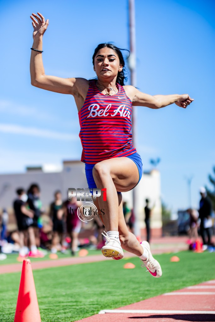 Long jump: 1, Jordan Owens, Andress, 23-feet, 4-inches; 2, Keinai Johnson, Pebble Hills, 22-6.5; 3, Jude Blanco, Hanks, 22-1; 4, Elias Munoz, Franklin, 22-0.5; 5, Jaivian Poindexter, Pebble Hills, 21-9.5; 6, Max Mancilla, Eastwood, 21-8.5; 7, Oscar Martinez, Bel Air, 21-7.5; 8, Devin Falk-Ramirez, Eastwood, 21-7.25; 9, Christopher Davis, Bel Air, 21-6.5; 10, Donovan Melendez, Andress, 21-5.5.