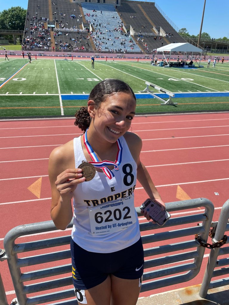 Eastwood junior Adelynn Rodriguez ran two personal best times – 4:52.72 in the 1,600 and 10:33.32 in the 3,200 – finishing third in both event at the Region 1-6A Championship to advance to state.