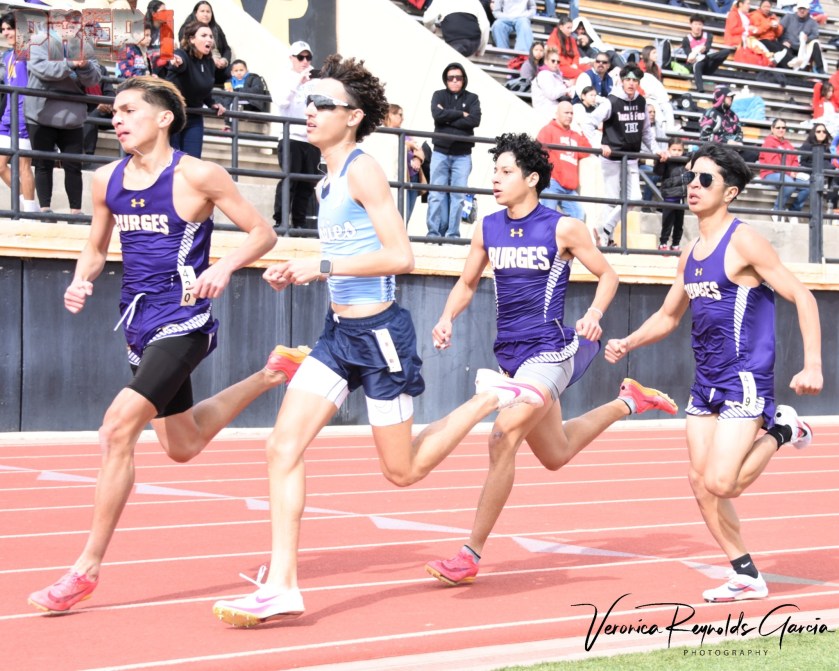 1,600-meter relay: 1, Montwood (Victor Arellano, Chris Saenz, Rex Hendrix, Seth Salas), 3:27.87; 2, Franklin (William Morken, Aaron Call, Adrian Reyes, Tyson Cotchery), 3:30.87; 3, Chapin (Dylan Sims, Antoine Martin, Dauntae Herrera, Seth Truax), 3:31.98; 4, Americas (Andres Hernandez, Jayden Mendivil, Christian Hurtado, Diego Romero), 3:35.10; 5, Hanks (Yannis Galanis, Ruben Ortega, Jacob Del Real, Ky’Ri Bonner), 3:35.74; 6, Eastwood (Jay Acuna, Sulliman Rodriguez, Evan Chacon, Max Mancilla), 3:35.98; 7, Burges (Yuri Alvarez, Iskander Vargas, Jesus Gastelum-Bustamante, Esteban Armendariz), 3:38.70; 8, Coronado (Sebastian Juarrieta, Max Sandhu, Edgar Valles, Franklin Armendariz), 3:39.20; 9, El Paso High (Hudson Meritt, Lorenzo Shields, , Joaquin Moya, Ayden Lugo), 3:40.23; 10, Pebble Hills (Christian Morales, Miguel Arambula, Amari Deion Welch, Jaivian Poindexter), 3:41.97.